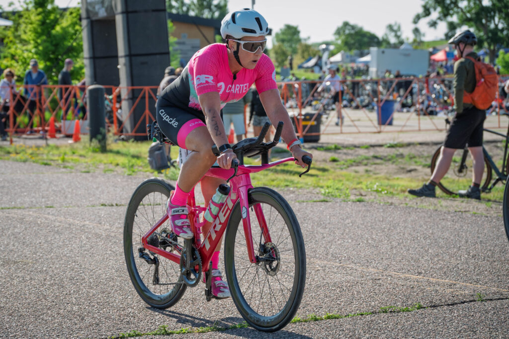 Anyway, I made it through this swim leg without a panic attack. I took it out a little easier to give myself a chance to acclimate the chilly water (they said it was 65, but no way- I’d say more like 60-62). I felt strong, and by the time I was half way through, I was running over people who’d started 6 minutes ahead of me. That’s always a good sign. I was out of the water in 14 min. Solid.